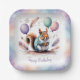 Cute Watercolor Baby Squirrel Balloons Birthday Paper Plate