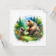 A mummy bear playing with her baby cub bear outside in a field of grass and flowers with a pine tree background. Watercolor style ai art.