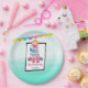 A set of personalised birthday paper plates with a cute watercolor bear wearing a golden crown. This whimsical animal is painted in pink and green and decorated with hearts across his chest. A colourful bunting banner strtches across the top. Background is an aqua green ombre gradient.