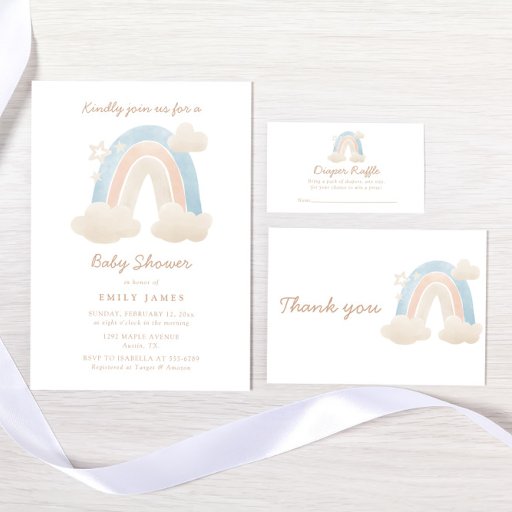 Looking to create lasting memories at your Baby Shower? Our exclusive collection, customisable by you, is the perfect solution! Cute Watercolor Boho Rainbow Baby Shower Invitation.