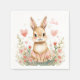 Cute Watercolor Bunny Pink Hearts Floral Woodland Napkin