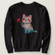 Cute Watercolor Cat Holding Red Carnation Birth Fl Sweatshirt