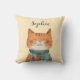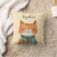 Cute Watercolor Cat Illustration Nursery Name Cushion
