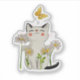 This charming watercolor illustration features an adorable white cat with rosy cheeks, sitting happily among blooming daisies while a yellow butterfly flutters above. With its soft pastel tones and joyful expression, this artwork perfectly captures the peaceful essence of springtime. Ideal for nursery prints, greeting cards, or whimsical decor, this design brings warmth and cheer to any space.