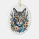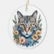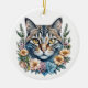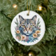 Cute Watercolor Cat with Flowers Christmas Ceramic Ornament