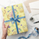 Cute Watercolor Cats and Flowers Pattern Yellow Wrapping Paper