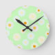 Cute watercolor colourful Daisy Pattern Green Round Clock