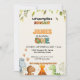 The invitation is fully customizable, allowing you to easily update all the essential party details, including the date, time, and location, right in the template. The reverse side features a delightful coordinating pattern of little dinosaur footprints in orange and light green on a cream background, adding a final touch of whimsy. This high-quality, fun invitation is the perfect way to kick off a memorable and prehistoric celebration for your one-year-old!