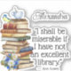 Cute watercolor design with a huge stack of books, wildflowers, and a blue chickadee bird with a quote by Jane Austen "I shall be miserable if I have not an excellent library." Personalised literary gift for a book lover.