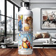Water bottle featuring cute watercolor images of children or your custom photos. With a simple black and white lining. The rectangle framing the text is optional and can also be scaled according to your needs in the advanced editor. A great gift for anyone who loves children, like a teacher or a mum.