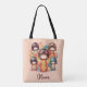 This personalised pink tote bag features cute watercolor Japanese kokeshi dolls.