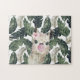 Cute Watercolor Llama | Tropical Monstera Jigsaw Puzzle