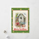 Send Joy & peace to your loved ones with this Merry Christmas card featuring cute bird, snowclad bird house, apples, "Merry Christmas" and "Let Your days be Merry & Bright". written in red stylish font.