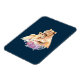 Magnet with a cute watercolor painting of a mother lion holding her baby cub. A pretty purple floral bouquet below them, adds a gentle touch to this sweet and adorable image. Dark blue background.
