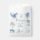 Ahoy, It's a Boy! Cute Nautical Baby Shower Favour Bag. Design features adorable seaside illustrations - dolphin, seagull, octopus, yacht, whale, compass and a seahorse. With a scattering of stars in ocean shades of blue. The elegant template is a combination of handwritten script lettering and serif fonts.