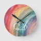 Brighten any room with this Cute Watercolor Personalised Rainbow Round Clock! Featuring a soft, hand-painted rainbow design in pastel tones, this charming clock adds a cheerful touch to nurseries, kids' rooms, classrooms, or play areas. Customise it with a name or short phrase for a one-of-a-kind gift or personal keepsake. The clear numbers and smooth clock hands make it both stylish and functional, blending whimsical design with everyday practicality.