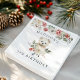 Cute, arctic-themed birthday party napkins featuring a floral border at the top of the design with a watercolor illustration of a baby polar bear surrounded by winter white flowers, red holly berries, and lush green leaves. Personalise the polar bear birthday napkins with the child's name and age. Designed to coordinate with our Cute Watercolor Baby Animals Winter Birthday Party collection.