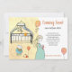 This adorable whimsical mum to be baby boy pregnancy announcement features a cute verse and expectant mum with stuffed animals waiting in the nursery for baby's arrival. Hues of peach and sepia on white. Rabbit holding balloon pattern on the reverse side of the card.