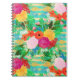 Cute Watercolor Red & Yellow Floral Biscay Green Notebook