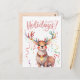 Cute Watercolor Reindeer and Christmas Lights Postcard
