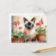 Cute Watercolor Siamese Cat Red Geranium Flowers Postcard