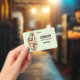 Name badge with a cute watercolor design featuring a cute sloth hanging onto a tree branch surrounded by green tropical leaves.