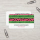 A business card with a cute watermelon pattern. Green rind in layers of stripes along with a layer of pink stripes with black seeds inside.