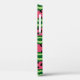 A phone case with a cute watermelon pattern. Green rind in layers of stripes along with a layer of pink stripes with black seeds inside.