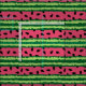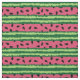 Fabric with a cute watermelon pattern. Green rind in layers of stripes along with a layer of pink stripes with black seeds inside.