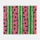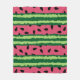 Blanket with a cute watermelon pattern. Green rind in layers of stripes along with a layer of pink stripes with black seeds inside.