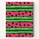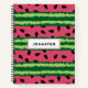 Spiral notebook with a cute watermelon pattern. Green rind in layers of stripes along with a layer of pink stripes with black seeds inside.