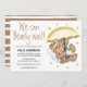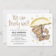 Organising a baby shower and looking for a baby shower invitation, these gender neutral baby shower invitations will be the perfect addition to your planning. Featuring the saying 'WE CANBEARLY WAIT!', an illustration of a watercolor angel bear holding a yellow umbrella, yellow stars, and a stylish invitation template which is easily edited. The font styles, size and colour can be changed by clciking on the customise further link after personalising.