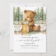 A very cute watercolor teddy bear and honey jar in a forest woodland setting, pregnancy announcement, with the popular phrase: "we can bearly wait".
