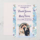 This elegant wedding invitation features a floral border with touches of blue, purple and yellow, with portraits of the bride and groom. This design creates a calm and romantic ambiance, perfect for announcing your special day.