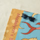 Get the party started with these cute beach towels that are easy to personalise for your bachelorette party, hen night, or girls' weekend! Modern party style design features a koi fish pattern in red and yellow, with bold red lettering on a blue background. Personalise with two lines of custom text; shown with the bride's name and event type, location and date. All text can be edited per your liking.