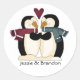 Adorable wedding envelope sticker seals, with country graphics of a penguin couple holding fins, with a heart between them. Black text under penguins is customisable to read your names or what ever you want. Great as seals and a finishing touch to your wedding invitations.