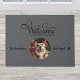 This custom photo dog doormat is the perfect gift for any dog lover. This design is complete with the words "Welcome to our home", a place to add your name and your dog's name, and an space to add your own photo. Enjoy!