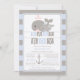 Modern whale baby shower invitation featuring a cute mum whale with baby set on a blue & light grey brown stripe background with an anchor accent and pendant banners. Flip our boys baby shower invite over to view a matching back for an extra special touch. Perfect for a nautical themed little baby boy shower.
