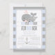 Modern whale baby shower invitation featuring a cute mum whale with baby set on a blue & light grey stripe background with an anchor accent and pendant banners. Flip our boys baby shower invite over to view a matching back for an extra special touch. Perfect for a nautical themed little baby boy shower.