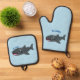 Cute whale shark happy cartoon illustration oven mitt & pot holder set