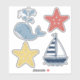 Bring a splash of nautical charm to any child’s room with these adorable nautical sticker designs featuring a happy little whale, navy blue and white sailboat and two colorful, decorated starfish. The hand-drawn style and calming coastal palette make it perfect for nurseries, playrooms, and beach-themed bedrooms. Sweet, soothing, and imaginative — it’s a delightful addition to your new nautical room collection. Part of our coordinated 'Nautical Kids’ Room' collection. Note: design adapted from generative content.