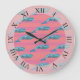 Cute Whales Fish Art Pink Stripes Pattern Custom Large Clock