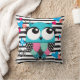 Cute Whimsical Blue Owl with eyelashes Cushion