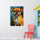 Capture the enchanting moment of a cute Boxer puppy gazing at a you with this whimsical poster. The playful expression on the puppy's face reflects a sense of wonder and curiosity, making it a perfect addition to any dog lover's collection. This vertical print not only brightens up your space but also adds a touch of magic, inspiring dreams of adventure and exploration. Ideal for nurseries, living rooms, kid´s room, or as a thoughtful gift for pet enthusiasts.