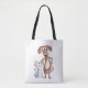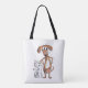 Cute Whimsical Brown Dog and Grey Cat Tote Bag