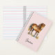 Cute kids notebook in light pink with a watercolor drawing of a cute brown horse and custom name in whimsical script.