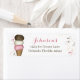 This design features a cute watercolor return address label, a pink-brown cream ivory sprinkles, a stylish trendy calligraphy script, a fun festive whimsical celebration, an ice cream matching theme, a simple minimalist minimal design, a summer birthday celebrate party, a pink white chocolate brown, with a Neapolitan flavour ice cream cone, a custom customised birthday party décor