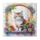 Cute Whimsical Cat in Window of Flowers Ceramic Tile
