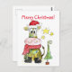 This is an original mixed media painting of a whimsical Christmas cow in a Santa hat.