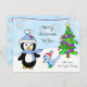 Cute Whimsical Christmas Penguin and Bird Postcard
